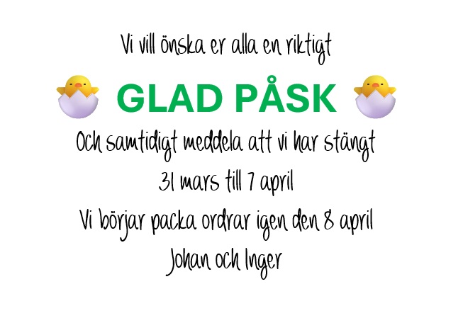 Vi skickar så snabbt vi kan, men pga Postens nya hämtningar kan det ta längre tid än tidigare.